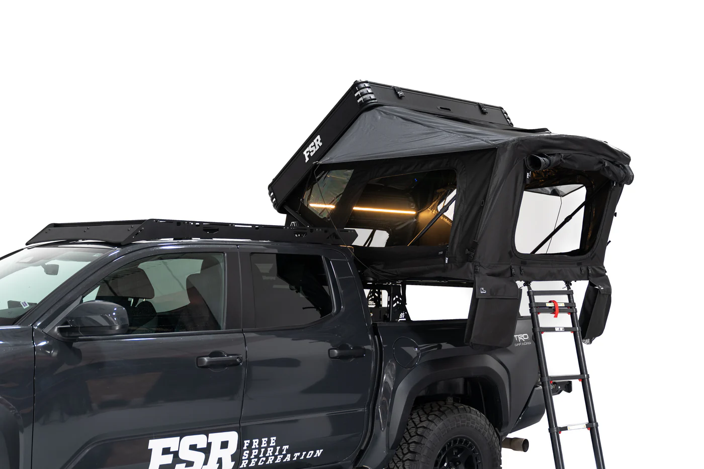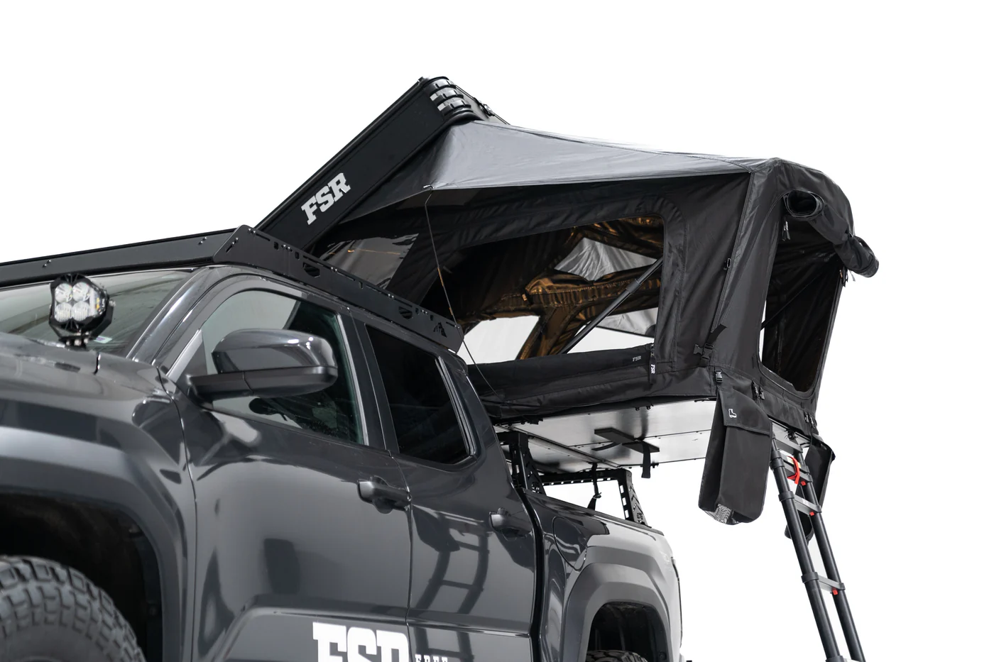 The Kali Rooftop Tent is a hybrid hard shell, expandable tent designed for 2-3 people and all-season use. The Kali Rooftop Tent by FSR is crafted for adventurers who want the compact footprint and lightweight feel of a fold-out tent, but with the durability and convenience of a hard shell. Its hybrid, expandable design makes it ideal for below-cab racks on pickups and mid-sized SUVs. The tent sleeps 2-3 people comfortably and is built for four-season use, featuring 100% waterproof materials and FSR’s patented Tri-Layer technology for superior insulation.