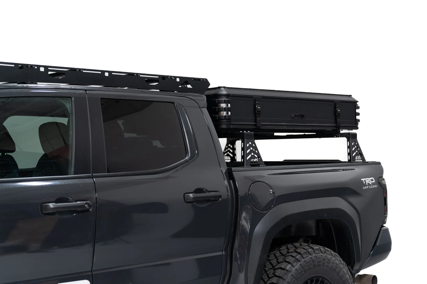Dual Hinge & Strut System: Maximizes interior space while keeping the exterior footprint minimal—ideal for below-cab, short bed pickups and mid-sized SUVs.
