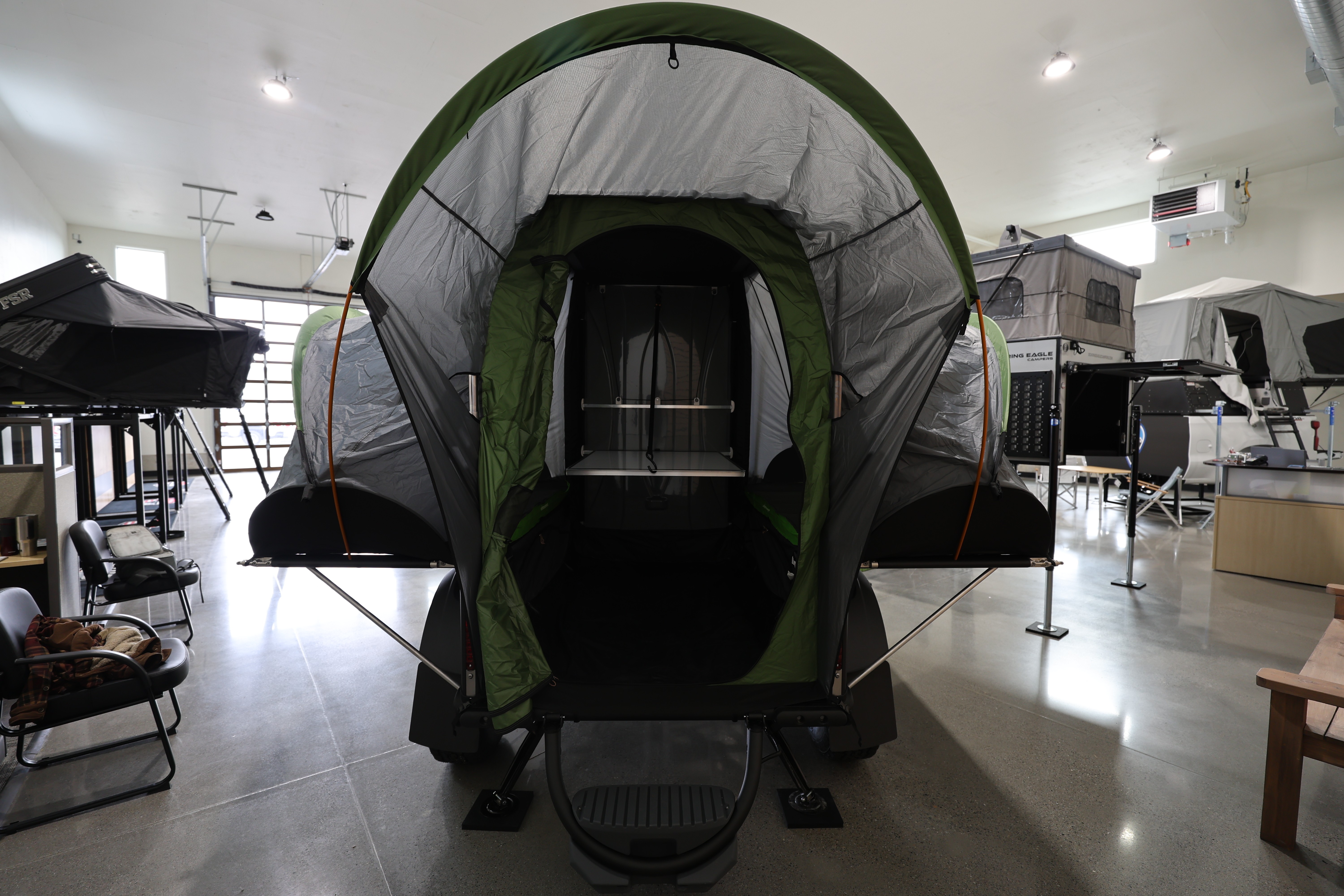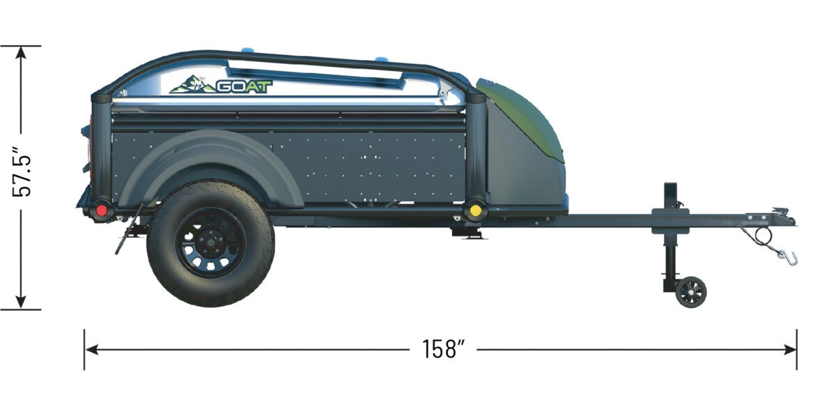 With expansive living space, next level versatility, and rugged capability, GOAT is the ultimate overland camper and off road trailer, ready for whatever the trail throws at you. The GOAT’s ingenious design and 950lb carrying capacity offers unparalleled versatility, easily transforming from a low profile OFF ROAD TRAILER that expands to a TOY HAULER for your dirt bikes and big gear to a OVERLAND CAMPER that offers 6’ 5” of standing room.